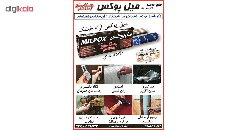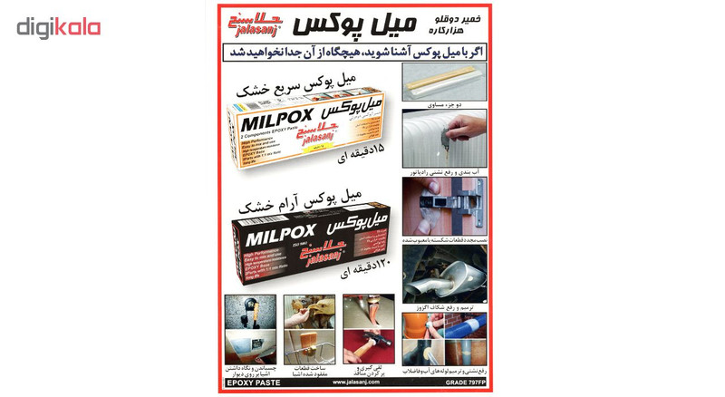 از میل پوکس سریع خشک جلاسنج میتوان در ترمیمات اضطراری مانند آب بندی لوله در حال نشت و یا درزگیری و قطعه سازی حتی در زیر آب و محیط مرطوب و هزاران مورد دیگر استفاده نمود.