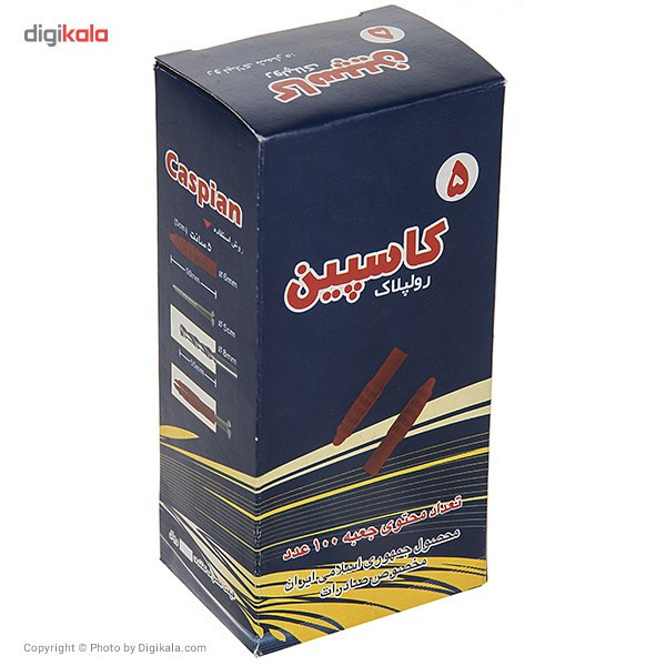 بسته رولپلاک شماره 5 کاسپین محصولی است که در سوراخکاری دیوار یا انواع مصالح ساختمانی به کار میرود. رولپلاک در کنار پیچ برای نصب اجسام مختلف استفاده میشود. در بسته این محصول شرکت «کاسپین» (Caspian) 100 عدد رولپلاک شماره 5 قرار دارد. قطر متهی مورد نیاز برای سوراخکاری جهت استفاده از این رولپلاک باید 8 میلیمتر باشد. عمق سوراخکاری موردنیاز این رولپلاک هم 55 میلیمتر است. این محصول از بهترین مواد برای رسیدن به استحکام بیشتر، ساخته میشود. رولپلاکها با توجه به طول پیچ مخصوص به خود شمارهگذاری میشوند. به عبارت دیگر با در نظر گرفتن طول پیچی که میتوان به رولپلاک بست، رولپلاک را میشناسند. به عنوان مثال اگر شما میخواهید که برای نصب جسمی روی دیوار، از یک پیچ شماره 3 (طول 3 سانتیمتر) استفاده کنید، باید رولپلاک شماره 3 را تهیه کنید. استفاده از اتصالات پیچ و رولپلاک نسبت به اتصالاتی نظیر میخ و پرچ از عمر و دوام بیشتری برخوردار است. هر چند که برای بهکارگیری این نوع اتصال باید از دستگاه دریل استفاده کرد. با بستن پیچ در رولپلاک انتهای آن باز میشود و این موضوع استحکام اتصال را بالا میبرد.